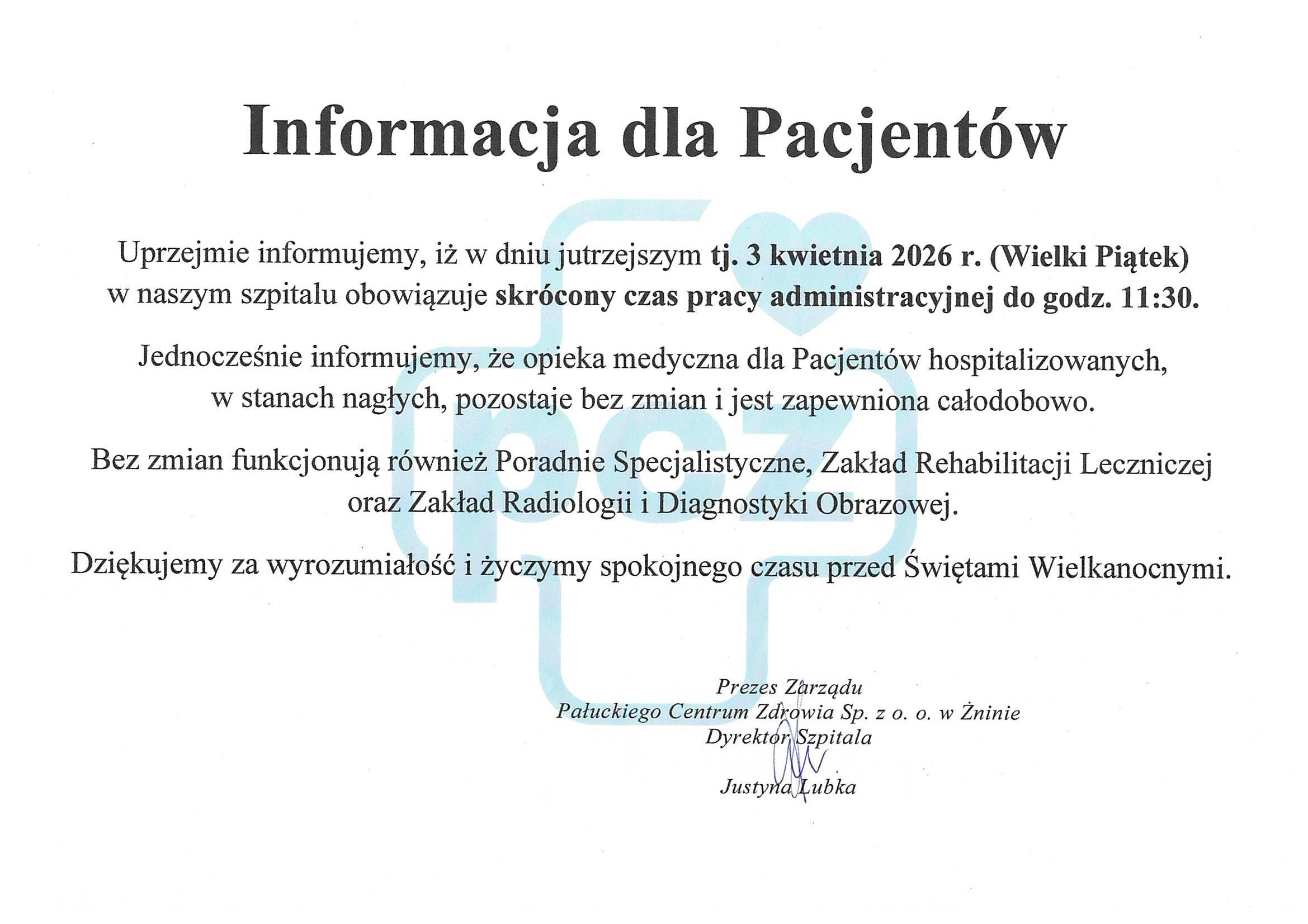 Postępujemy tak, aby pacjent naszego szpitala czuł się dobrze i bezpiecznie,